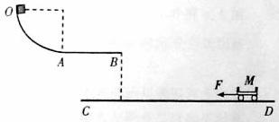 24.(山东卷)(15分)如图所示、四分之一圆轨道OA与水平轨道AB相切,它们与另一水平轨道CD在同一竖直面内,圆轨道OA的半径R=0.45m,水平轨道AB长S1=3m,OA与AB均光滑。一滑块从O点由静止释放,当滑块经过A点时,静止在CD上的小车在F=1.6N的水平恒力作用下启动,运动一段时间后撤去F。当小车在CD上运动了S2=3.28m时速度v=2.4m/s,此时滑块恰好落入小车中。已知小车质量M=0.2kg,与CD间的动摩擦因数