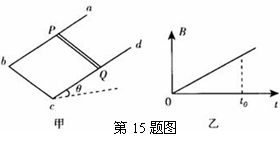 如图甲中abcd为导体做成的框架,其平面与水平面成θ角,质量为m的导体棒PQ与ab、cd垂直且接触良好,回路的电阻为R,整个装置放于垂直框架平面的变化的磁场中,磁感应强度B随时间变化规律如图乙所示,棒PQ始终静止,在时间0-t0内,棒PQ受到的静摩擦力的大小变化是