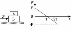 A、B两物体叠放在一起,放在光滑的水平面上,从静止开始受到一变力的作用,该力与时间的关系如图所示,A、B始终相对静止,则下列说法正确的是