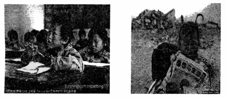 1.在旱灾和震灾中的孩子们虽然遇到了无法想象的困难,但他们仍然没有放弃学习。请简要描述这两张照片,并谈谈你的感想。文章的开头已经给出。