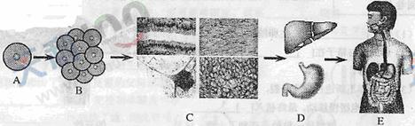 27、下图中,A--E示意人体的不同结构层次,请据图分析回答下列问题。