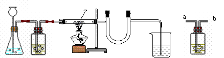 若E装置中澄清石灰水变浑浊,C、D装置中无变化,则A装置中产生的气体为 。若在A、B装置间连接装置F,检验并除去混有的氯化氢杂质气体,则A装置的导管应与F装置的导管 (填“a”或“b”)连接,此时,装置F中的试剂是 。