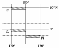 7.甲、乙、丙三艘船同时出发驶向180°经线,而且同时到达,速度最快的是 ( )