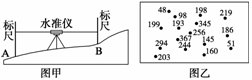 对高度为0.562米,在此基础上可推算出B点的海拔高度;图乙中显示了各点高程,大致