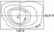 (2010·济南外国语学校期末质检)读“我国某地等高线示意图”(单位:米),其中虚线a、b分别为一年中不同季节的两个极值湖泊水位,完成13-14题。