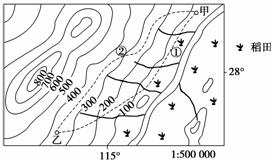 18.下图为“我国亚热带季风气候区一个小区域的平面图及地形剖面图”。据此回答下列问题。(18分)