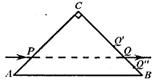 16.一个等腰直角三棱镜的截面如图所示,一细束蓝光从AC面的P点沿平行底面AB方向射入棱镜后,经AB 面反射,再从BC面的Q 点射出,且有PQ//AB (图中未画光在棱镜内的光路)。如果将一细束红光仍从P 点沿平行底面AB方向射入三棱镜,则从BC面射出的光线 ( )