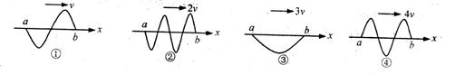 有四列简谐波同时沿x轴正方向传播,波速分别是v、2v、3v和4v,a、b是x轴上所给定的两点,且ab = l.在t时刻a、b两点间四列波的波形如图所示,则下面的判断正确的是