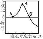 C.生长素类似物的两种浓度可能为高于C点时的浓度