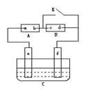57.如图A为直流电源,B为浸透饱和氯化钠溶液和酚酞试液的滤纸,C为电镀槽,接通电路后,.发现B上的c点显红色,请填空: (1)电源A上的a为______________极 (2)滤纸B上发生的总化学方程式为:________________________________ (3)欲在电镀槽中实现铁上镀锌,接通K点,使c、d两点短路,则电极e上发生的反应为:_______________________________,电极f上发生的反应为:__________________,槽中盛放的镀液可以是_______________或_______________(只要求填两种电解质溶液)。