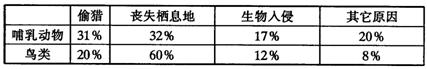 ⑷ 下表表示某地哺乳动物和鸟类生存受到威胁的各主要原因及其比例。