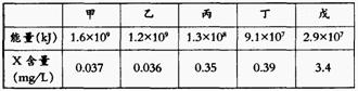 (3)下表是五个种群在一个相对稳定的水域生态系统中所含有的总能量和污染物X的平均浓度。已知水中X的质量浓度为0.003mg/L请分析说明: