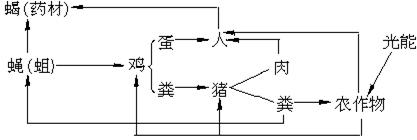 27.如图所示为农民采用的笼养蝇蛆法而形成的食物网。(说明:鸡粪中含有较多的营养物质未被消化,因此,可添加其他饲料养猪,从生态系统的角度来看,这是一个理想的生态系统)请据图回答有关问题。