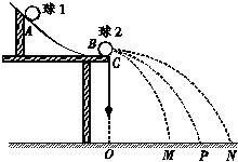 (2)小球从槽口C飞出后做平抛运动的时间相同,设为t,则有OP=v10t,OM=v1t,ON=v2t