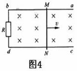 图所示,两根相距为的平行直导轨ab、cd、b、d间连有一固定电阻R,导轨电阻可忽略不计。MN为放在ab和cd上的一导体杆,与ab垂直,其电阻也为R。整个装置处于匀强磁场中,磁感应强度的大小为B,磁场方向垂直于导轨所在平面(指向图中纸面内)。现对MN施力使它沿导轨方向以速度v(如图)做匀速运动。令U表示MN两端电压的大小,则( )