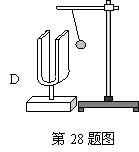 28.如图所示,用细线将一小球静止的悬挂在空中,用一个未敲击的音叉慢慢的接触小球,小球未发生任何现象。当用敲击后且发声的音叉慢慢的接触小球,发现小球被弹动,这一现象说明声音是由于物体的 而产生的。(2分)