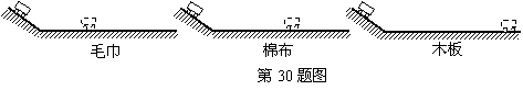 如图所示,是小强同学探究物体不受力时运动规律的实验装置。他共做了三次实验,第一次让小车从斜面上运动到水平的毛巾表面上。第二次让小车从斜面上同一高度运动到水平的棉布表面上。第三次让小车从斜面上同一高度运动到水平的木板表面上。小车停下来的位置如图所示。如果让小车从斜面的同一高度运动到水平玻璃表面上,小车运动的距离将会