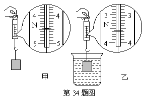小刚用弹簧测力计和水测金属块的密度。将金属块挂在调好的弹簧测力计的挂钩上,手提弹簧测力计,金属块静止时弹簧测力计的示数如图甲所示。手提弹簧测力计,使金属块没入水中静止时,弹簧测力计的示数如图乙所示。则金属块受到的重力是