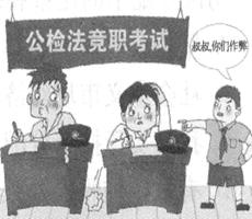 27.右边漫画反映的是某地在公检法系统竞职笔试中,聘请小学生担当“监考官”,当场抓住25名作弊考生的事情。此举因“大人的事小孩才干得好”而引起社会各界的强烈关注。联系到依法治国来看,这一现象表明