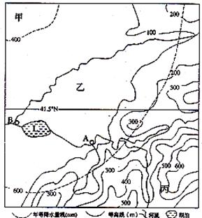 是__ _____(1分)。B比A城市规模大,原因是什么(2分)?近年来图中湖泊L面积在逐渐缩小,其变化会对B城附近的水文特征产生什么影响(1分)?