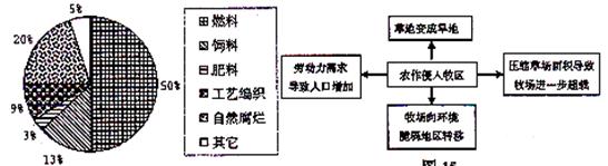 (4)该地某中学地理小组开展研究性学习,拟定了两个研究性课题,即“农村地区秸秆利用调查研究”和“本地区草原生态问题演变过程研究”。通过查找资料、实地考察总结出以下信息:“该地秸秆利用方式结构示意图(图甲)”和“环境演变过程示意图(图乙)”
