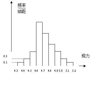19.(12分)、随机抽查某地区高三年级100名学生的视力情况的频率分布直方图,如下图,已知前四组的频数成等比数列,后六组的频数成等差数列,组距为0.1,