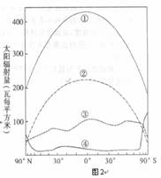 读到达地球太阳辐射量的分布图,图中曲线分别表示地表吸收太阳辐射量、地表反射太阳辐射量、大气上界太阳辐射量、云层反射太阳辐射量。回答4-6题。