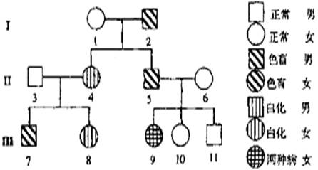(3)若Ⅲ8与Ⅲ11结婚,生育一个患白化病孩子的概率为________________ ,生育一个患白化病但色觉正常孩子的概率为______________________,若Ⅲ8与该地一个表现正常但为携带者的男子结婚,则他们生育一患白化病男孩的概率为__________________。