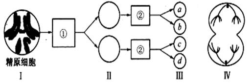 44.(4分)下面是某果蝇的精原细胞分裂产生精子细胞的示意图,其中图Ⅳ细胞中只表示了部分染色体的情况,请回答。