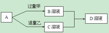 (1)A为金属单质,D溶液中含有氯化亚铁、硫酸亚铁和盐酸。则A为 ,B溶液中溶质为 ,A与乙反应的化学方程式为 。