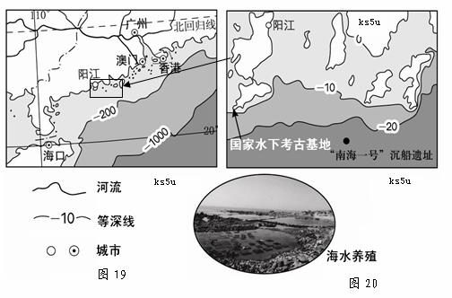 A.[海洋地理]图19为“我国南海部分海域图”,图20是阳江附近的海水养殖景观。读图和材料完成下列问题。(10分)