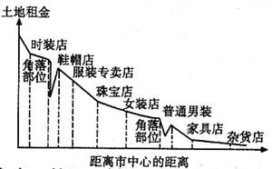 ①距离市中心越近,零售业分布的高度越高 ②距离市中心越近,商品的档次越高