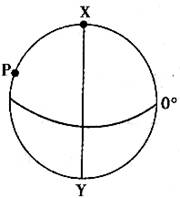 下图大圆所示范围内为夜半球,北极圈内出现极夜,X点纬度为66°34′,Y点经度是70°W。回答39--40题: