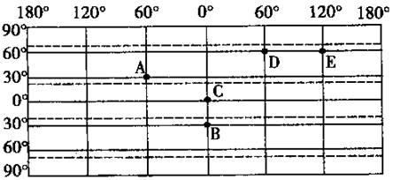 41.读“世界经纬网示意图”,回答下列问题:(8分)