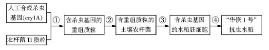 32.(10分,除注明外,其余每空2分)2009年10月,我国自主研发的转基因抗虫水稻“华恢1号”获得农业部颁发的安全证书。下图表示该抗虫水稻主要培育流程,据图回答: