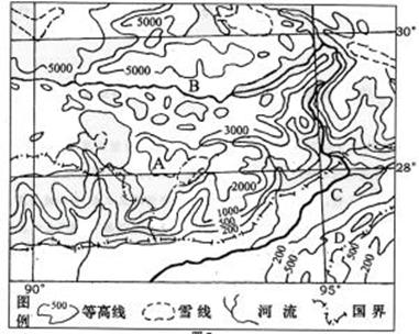 (2)比较B地与D地的降水差异,并分析原因。(10分)