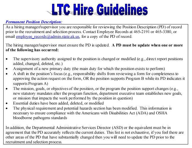 B. a description for temporary positions