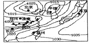 读某日地面天气形势图(单位:百帕),回答第3-4题.