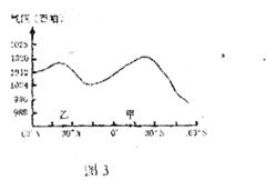 图3为“某月沿0°经线海平面平均气压分布图”。读图回答12-14题。