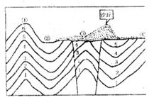 读某地地质地形剖面图右图,图中1.2.3.4.5.6为地层编号,并表示地层由老到新。据此判断31-33题。