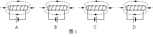 5、如图1所示的通电螺线管磁场的磁感线方向,四个图中正确的是:
