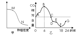 (2)在甲图中,与M点相比,N点限制单株光合作用强度的主要外界因素是 。研究中还发现,不仅单株番茄光合作用强度与种植密度呈负相关关系,番茄植株的生长也与种植密度呈负相关,番茄生长的调节方式是 ,与番茄果实发育最密切的激素是 。