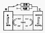 (2)混合动力车的电动机目前一般使用的是镍氢电池,镍氢电池采用镍的化合物为正极,储氢金属(以M表示)为负极,碱液(主要为KOH)为电解液。镍氢电池充放电原理示意如图,其总反应式是:![]()
