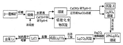 28. (15分)锂被誉为“高能金属”。工业上用硫酸与β-锂辉矿(LiAlSi2O6和少量钙镁杂质)在250-300℃反应,生成Li2SO4以及硅铝化合物、MgSO4等,其工业生产流程如下: