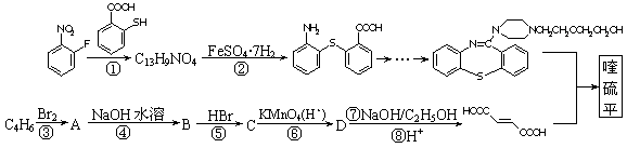 已知:(Ⅰ)反应①为取代反应;(Ⅱ)A的系统命名为1,4-二溴-2-丁烯。