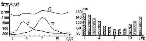②F河段的汛期在 季,主要的补给方式是 。(4分)