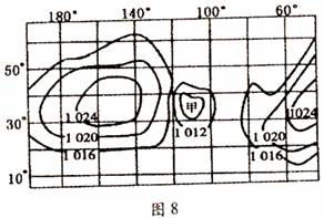 2l. 图8中20°纬线与140。经线交点处的风向是