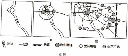 图10是我国某城市发展过程中的三个阶段,读图回答25-26题。