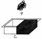 30.某同学利用青菜幼苗(如图甲)进行了植物向光性实验。他把等量、已发芽的青菜种子均匀地排列在4个培养皿中,当青菜幼苗长高至1.5厘米左右时,对各培养皿中的幼苗分别进行不同的处理,并都用单侧光连续照射一段时间,如图乙所示。