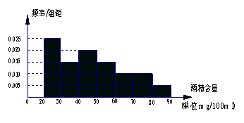 13.2009年8月15日晚8时开始某市交警一队在该市一交通岗前设点对过往的车辆进行抽查,经过两个小时共查出酒后驾车者60名,图甲是对这60名酒后驾车者血液中酒精浓度进行检测后依所得结果画出的频率分布直方图,则其中酒精浓度在70